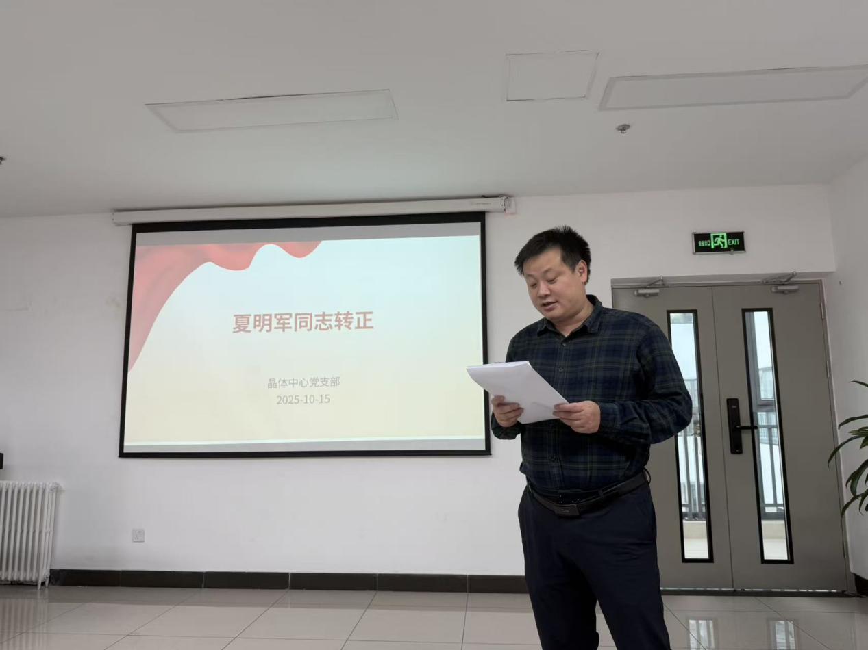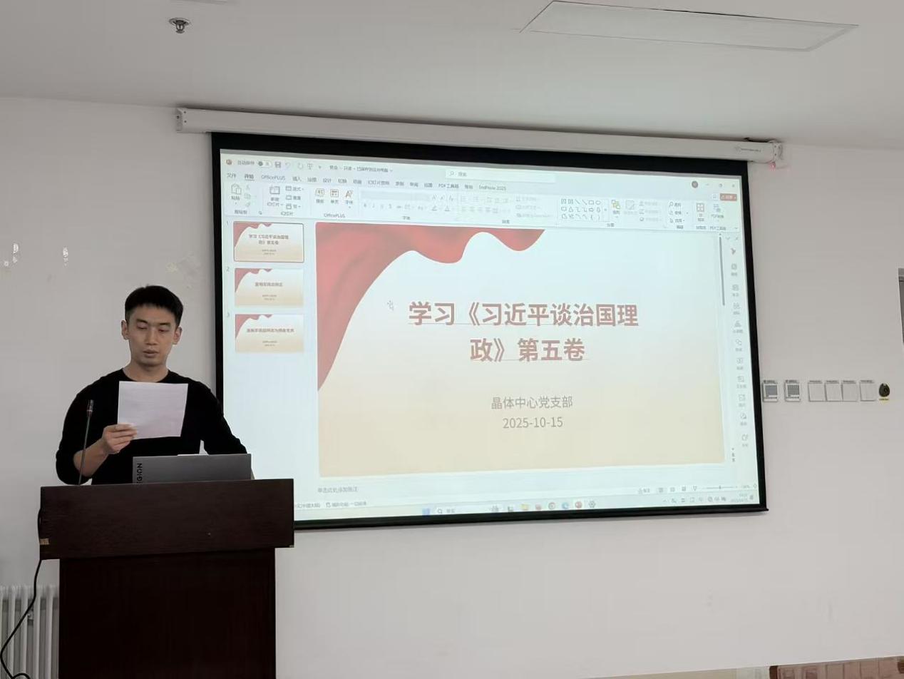 10月15日,晶体中心党支部召开支部党员大会,集体深入学习《习近平谈治国理政》第五卷,并审议预备党员转正及接收事宜。会议由支部组织委员公丕富主持。