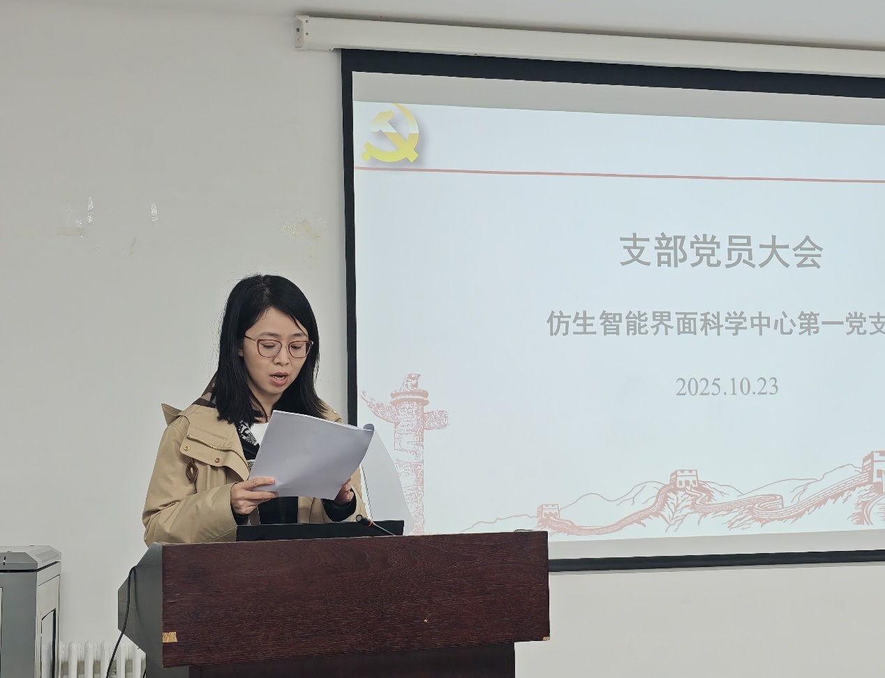 10月23日,仿生智能界面科学中心第一党支部召开支部大会并开展了系列活动。此次会议由支部书记郑美玲主持,党委书记王树涛以普通党员身份参加会议,支部组织委员万茜子同志组织预备党员转正工作,郑美玲和副书记田野、宣传委员张飞龙分别领学专题活动。40余位党员同志参加了此次会议。
