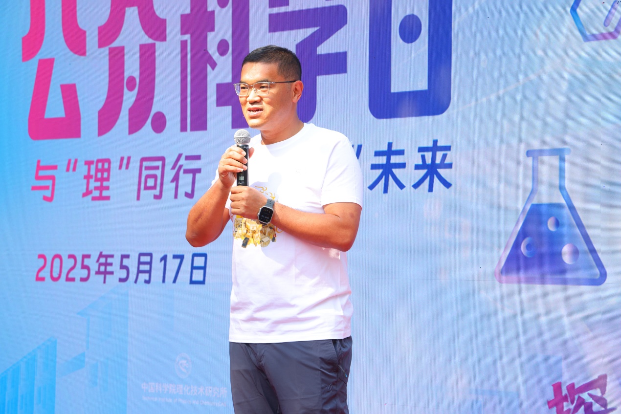 理化所纪委书记袁庆智发表致辞,对来访公众表示热烈欢迎,祝愿大家在理化所快乐玩科普、快乐学科学,希望公众科学日活动能在孩子们心中种下热爱科学的种子。