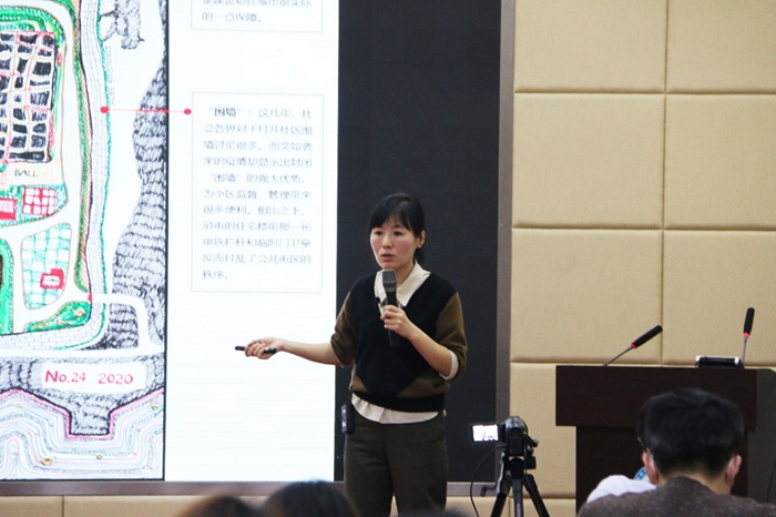 张羽老师用画作记录生活日常,从《缘起:成长印迹》、《专业训练》、《城市旅绘》、《日常北京》、《绘制卡片》、《吃的故事》、《喵无处不在》、《无题》八个部分进行分享。张羽认为以绘画的方式描绘自己的心境对于设计者来说非常重要,适度地从沉重的专业绘图中挣脱出来,用自己的方式重构一个纸上的空间环境可以说是一种心灵的按摩或灵魂的解放。接着,张羽分享几幅建筑的设计草图,指出草图对于设计的意义,即草图是设计者构思、推敲设计、表现建构逻辑的重要手段。随后,张羽分享她在各个国家旅行中的所见所闻,从画作里的细节讲述她看到的“不同的美”。张老师还从食物、猫等特殊的形象进行讲解,展示生活中的艺术。最后,张羽讲述她绘画的开始及练习的过程,并与同学们探讨了绘画以及培养一个无功利爱好的意义,她以罗丹的名言“这个世界不是缺少美,而是缺少发现美的眼睛”作为结尾,认为开放自己的心灵,在生活中寻找幽默和温馨的瞬间,体味这世界的神奇和美妙就是生命的意义。