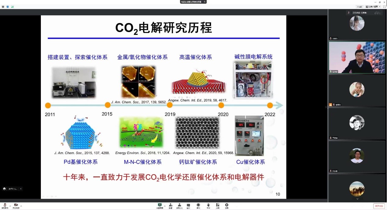 11月4日, 应“未来青年论坛”邀请,中科院大连化学物理研究所汪国雄研究员做了题为“二氧化碳电解制燃料和化学品研究”的线上报告。理化所科研人员、博士后和研究生等近50人参会,报告由理化所副所长王树涛主持。