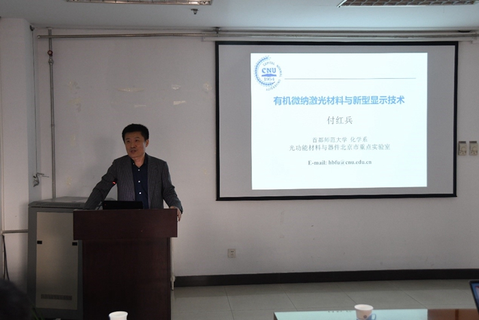 11月10日,应理化所“未来青年论坛”邀请,首都师范大学付红兵教授、清华大学王朝晖教授来理化所交流访问,并分别作了题为“有机微纳晶激光材料与新型显示技术”和“酰亚胺功能化的分子碳”的精彩学术报告。