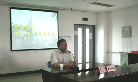 主题学习活动由甄珍主委召集并主持。本次活动也得到了理化所党委的大力支持和帮助。前来参加的有理化所支部的盟员、民盟科学院委员会张晓春、何裕建委员以及兄弟所积极要求加入民盟组织的一些年轻同志。中科院京区党委统战部长李浩然、理化所党委书记黄勇、刘新厚所长、统战负责同志和工会副主席均应邀出席。 活动主要安排了三项内容,其中第一是关于理化所支部在2009年的基层组织建设工作情况。介绍了新入盟的同志,向其表示热烈欢迎并提出了更高的要求;第二项是李教授给大家做关于民主党派优良传统方面的讲座。第三项根据讲座内容进行讨论。 李教授的讲座内容十分丰富精彩,大家的思想一下子就进入了演讲的历史年代。他将“统战”一词以“大团结、大联合(为宗旨);争取民心团结力量(为作用)”诠释其深刻的涵义,用大量的历史史料情景再现地描述了民主党派与中国共产党并肩合作,取得抗日战争和解放战争最后胜利的生动一幕。 讨论中大家争先提问着对讲座中产生的感兴趣的问题。黄勇书记对李教授的讲座感受很深,他说:通过听取讲座,对多党合作历史有了更多的了解,民主党派与中国共产党紧密合作的历史过程很不平凡,我作为理化所新上任的党委书记一定会在今后的工作中对统战工作加以重视和支持……。话音一落在座的每一位都感到很亲切和鼓舞,甄珍主委表示我们的合作会越来越好……。活动从始至终充满了党盟友好和谐的气氛。临别时分,李教授非常感谢科学院统战部和理化所党委对统战工作给予的大力支持,并表示今后有机会还愿意来参加这样的活动。 迎接建国六十周年、发扬继承民主党派优良传统的主题活动给大家留下了深刻的记忆,理解了长期共存、互相监督、肝胆相照、荣辱与共这十六个字的深刻含义。 民盟中国科学院委员会理化所支部供稿 2009.9.8