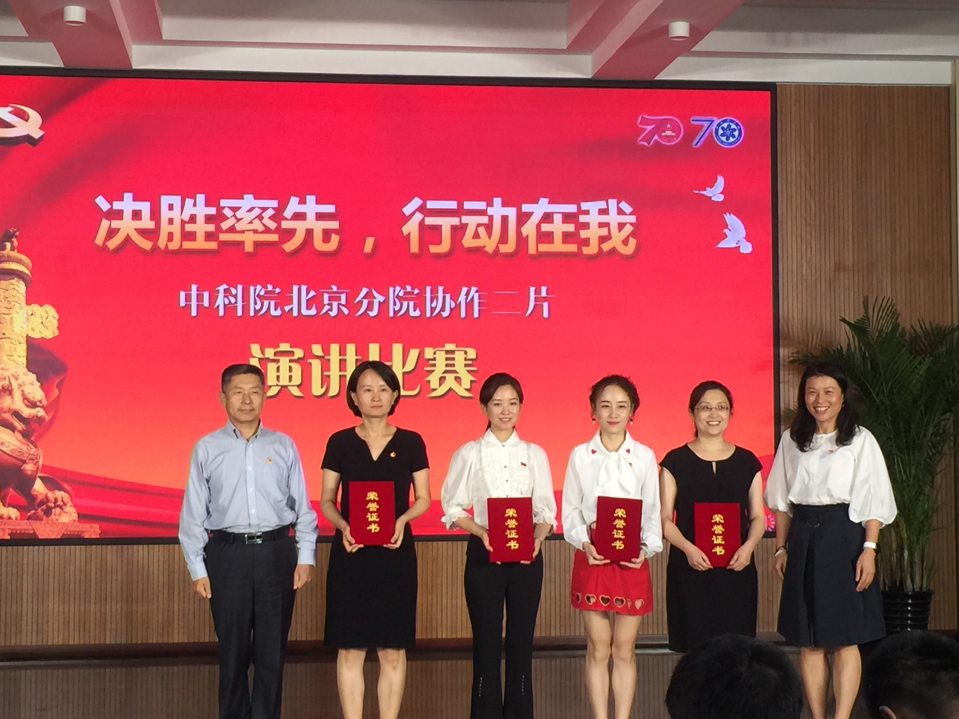 为庆祝中国共产党成立98周年,庆祝建国、建院70周年,扎实开展“不忘初心,牢记使命”主题教育,7月1日,北京分院协作二片举办“决胜率先、行动在我”主题演讲比赛。高波研究员代表理化所参赛,并荣获一等奖。
