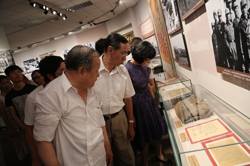 参观中老同志们认真聆听介绍,仔细参观展览。一件件实物、一幅幅照片、一张张图表、一组组数据,教育我们铭记抗战的峥嵘岁月,珍爱来之不易的和平。老同志们不时在展品前驻足观看,缅怀抗日先烈、思考历史使命。