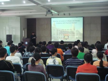 925日,应“中国科学院光化学转换与功能材料重点实验室”邀请,香港大学支志明院士访问理化所,并作了题为“Selective activation of alkane and aerobic oxidation with practical interest”的学术报告。报告中,支志明院士介绍了以过渡金属配合物作为烷烃的碳氢键活化和氨基化催化剂的最新研究进展,以及利用过渡金属配合物作为催化剂、氧气和过氧化氢作为最终氧化剂将烯烃和炔烃氧化成羧酸类化合物的新氧化方法,并对过渡金属配合物作为催化剂的应用进行了展望。