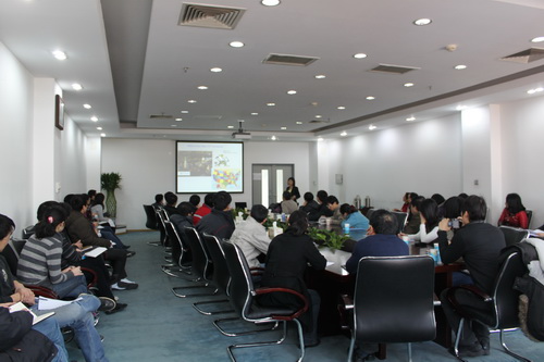 Libai Huang教授首先介绍了空间分辨技术和时间分辨技术,该技术将原子力显微镜与瞬态吸收光谱和时间分辨发光光谱技术相结合,实现了高空间分辨下的高灵敏度时间分辨光谱成像。随后,Libai Huang教授报告了她所在的研究组最近的研究工作,他们利用空间和时间分辨技术研究了石墨烯和共混共轭高分子的激发态动力学过程,并深入讨论了这些系统中电荷转移过程的机理,这些研究对发展高效太阳能转化系统具有十分重要的理论和实际意义。报告结束后,Libai Huang教授与科研人员和研究生进行了深入的交流和讨论。