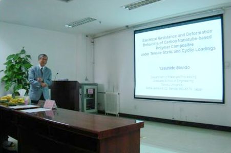 应工程塑料国家工程研究中心邀请,日本东北大学Yasuhide Shindo(进藤裕英)教授于6月20日上午来理化所交流访问,并作了题为Electrical Resistance and Deformation Behaviors of Carbon Nanotube-based Polymer Composites under Tensile Static and Cyclic Loadings的学术报告。