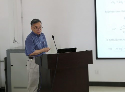 张景园教授作了题为Generation of High Power Mid-IR Coherent Radiation and Amplification of Ultra-Weak Signals and Images Using Optical Parametric Amplification的学术报告,首先介绍了非线性光学的基本原理以及光学参量放大技术所具有的高增益、高时空分辨以及宽光谱范围等特点,然后重点讨论了利用光参量技术在红外晶体产生皮秒中红外相干辐射的方法及其应用。他还介绍了光学参量技术作为高增益、超宽调谐范围、高时空分辨的技术手段,用于单光子水平的超微弱信号的探测及该方法在二维微弱图像放大、目标的三维成像技术中的应用。最后,他针对深紫外短脉冲的测量问题,介绍了基于光参量技术的时域分析方法。