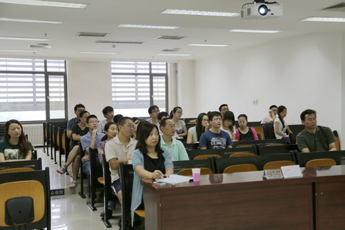 报告中,朱俊勇教授主要介绍了他们近年来在林木生物质转化为生物燃料方面取得的进展,并对其团队在纳米纤维素课题的研究进展以及未来纳米纤维素的应用作了介绍。朱俊勇教授的报告引起听众的浓厚兴趣,科研人员和研究生针对报告内容和朱俊勇教授进行了交流和讨论。