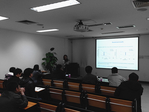 报告中,Hua Sheng研究员介绍了目前核聚变材料的选择所面临的挑战,核聚变材料的多尺度研究模型,并展示了她的团队对铍、石墨、钨等核聚变材料的研究成果。丰富的报告内容使参加报告会的师生获益良多。报告后,师生们针对报告内容与Hua Sheng研究员进行了深入交流。