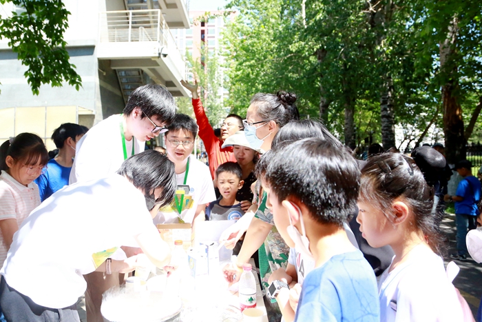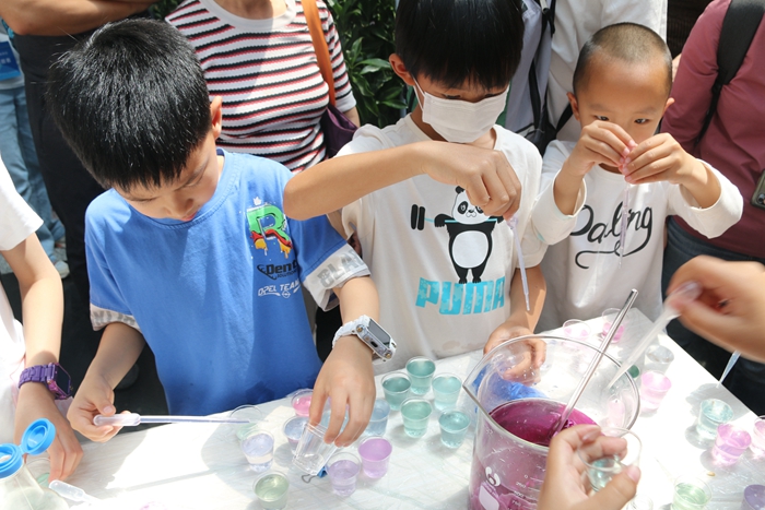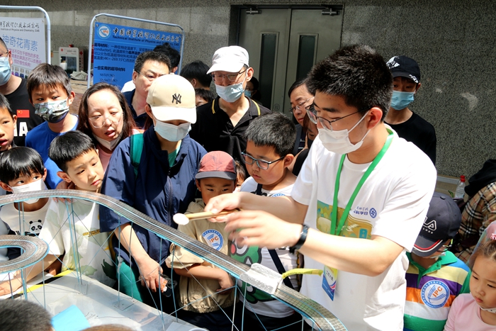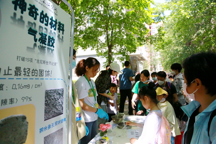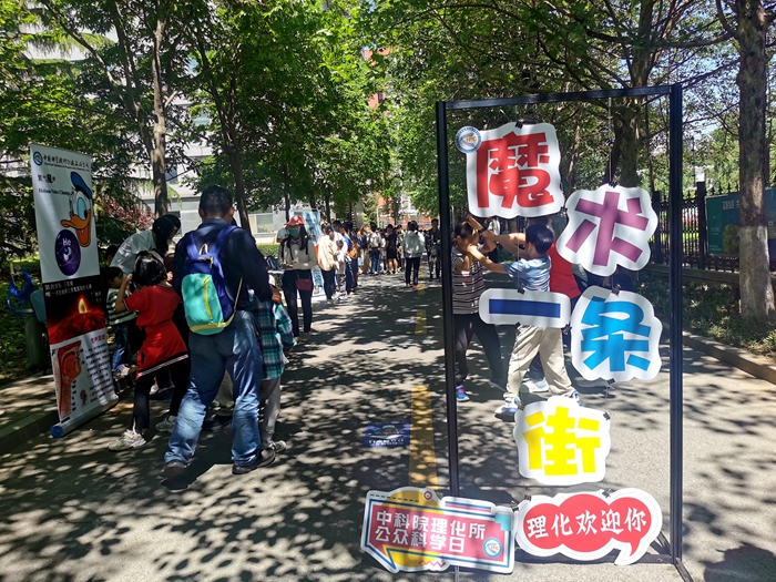 在理化所科研大楼和园区草坪东侧,展示了“奋斗者”号浮力材料、液态金属黑科技、激光显示技术、神奇的飞秒激光加工、绿色环保的热声热机、低温超导等一系列硬核“前沿科技秀”,更有“显微世界探秘”“抽刀断水”、“聚水成字”、“踏水无痕”、“拒水布料”、“变色果冻”、“嗨!魔音”、“万磁王的对抗者”、“白色污染特务”、“神奇材料气凝胶”、“污水处理魔术手”、“不怕水的纸”、“奇妙的低温世界”等组成的“魔术一条街”,成为青少年的科学乐园。