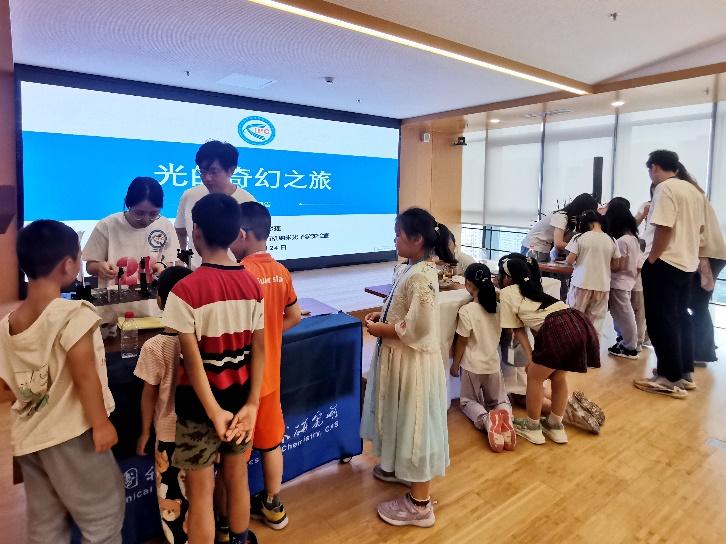 时值暑假期间,中国科学院网络中心托管班的老师和同学们成为此次科普巡演的首批观众。通过生动有趣的科学实验展演和互动体验,孩子们了解了关于光的知识,激发了孩子们对科学的浓厚兴趣,活动现场气氛热烈。
