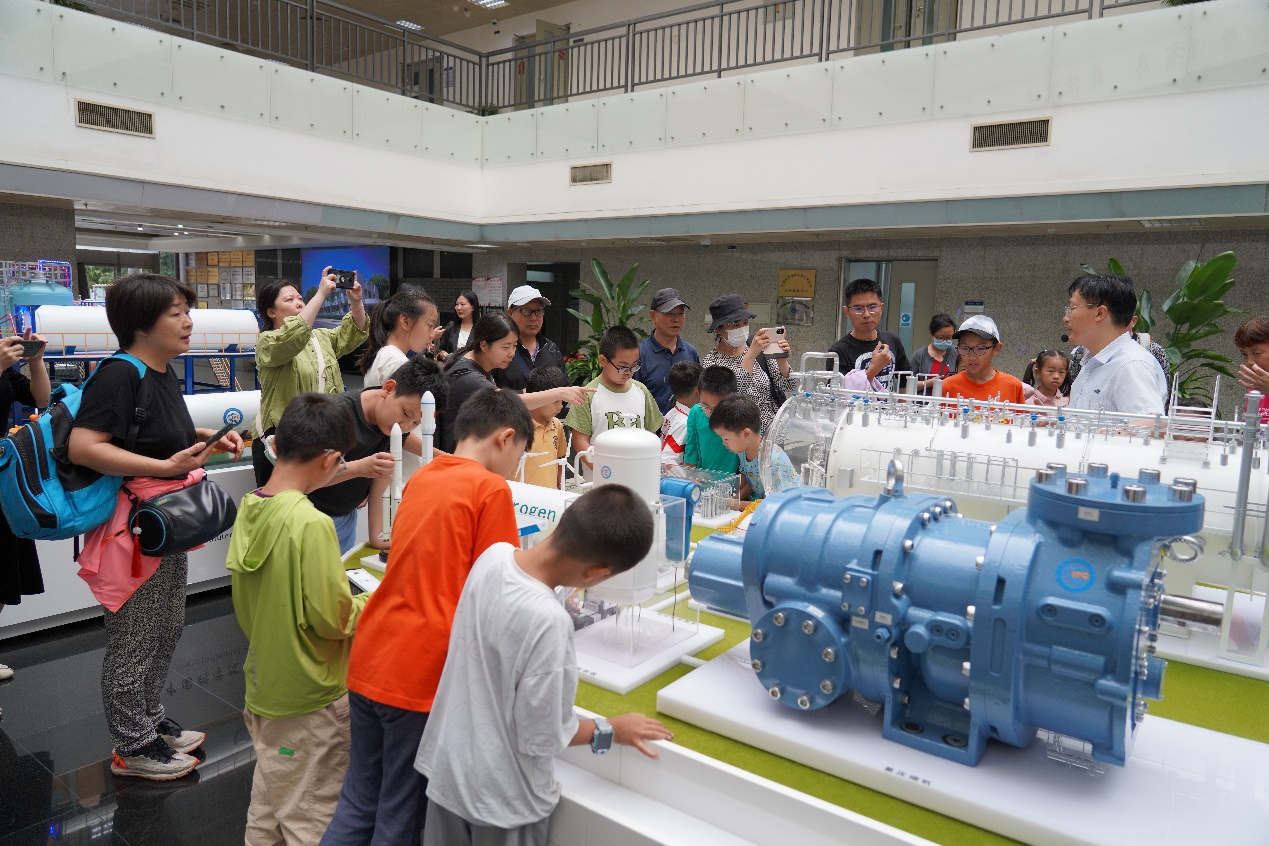 胡忠军研究员等表演了科学实验秀《风起云涌》,包含了“歌焰”、“空中气球环”、“凤鸣变色壶”、“高脚杯之舞”、“走马灯”、“磁悬浮”等一系列科学实验展演。通过生动有趣的科学实验展演和互动体验,激发了孩子们对科学的浓厚兴趣,活动现场气氛热烈。科学实验秀之后,社区民众还参观了大型氢氦低温装备成果展。