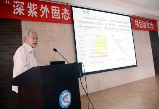 9月6日,“深紫外固态激光源前沿装备研制项目”首席科学家、中科院院士许祖彦在项目验收会上做项目研制总报告。新华社记者 马宁 摄