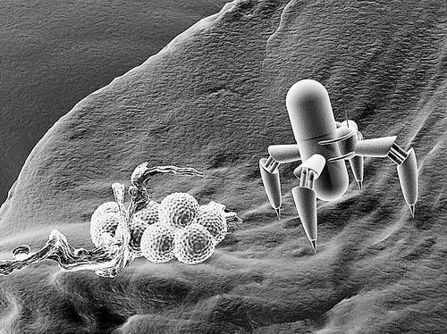 纳米机器人的研制属于分子仿生学范畴,它根据分子水平的生物学原理设计制造,并在纳米空间控制、操作。它可以精确杀死癌细胞,疏通血栓,清除动脉内的脂肪沉积,清洁伤口,粉碎结石等。以色列科学家目前研制了一种微型纳米机器人,它可以在人体内“巡逻”,在锁定病灶后自动释放所携带的药物。