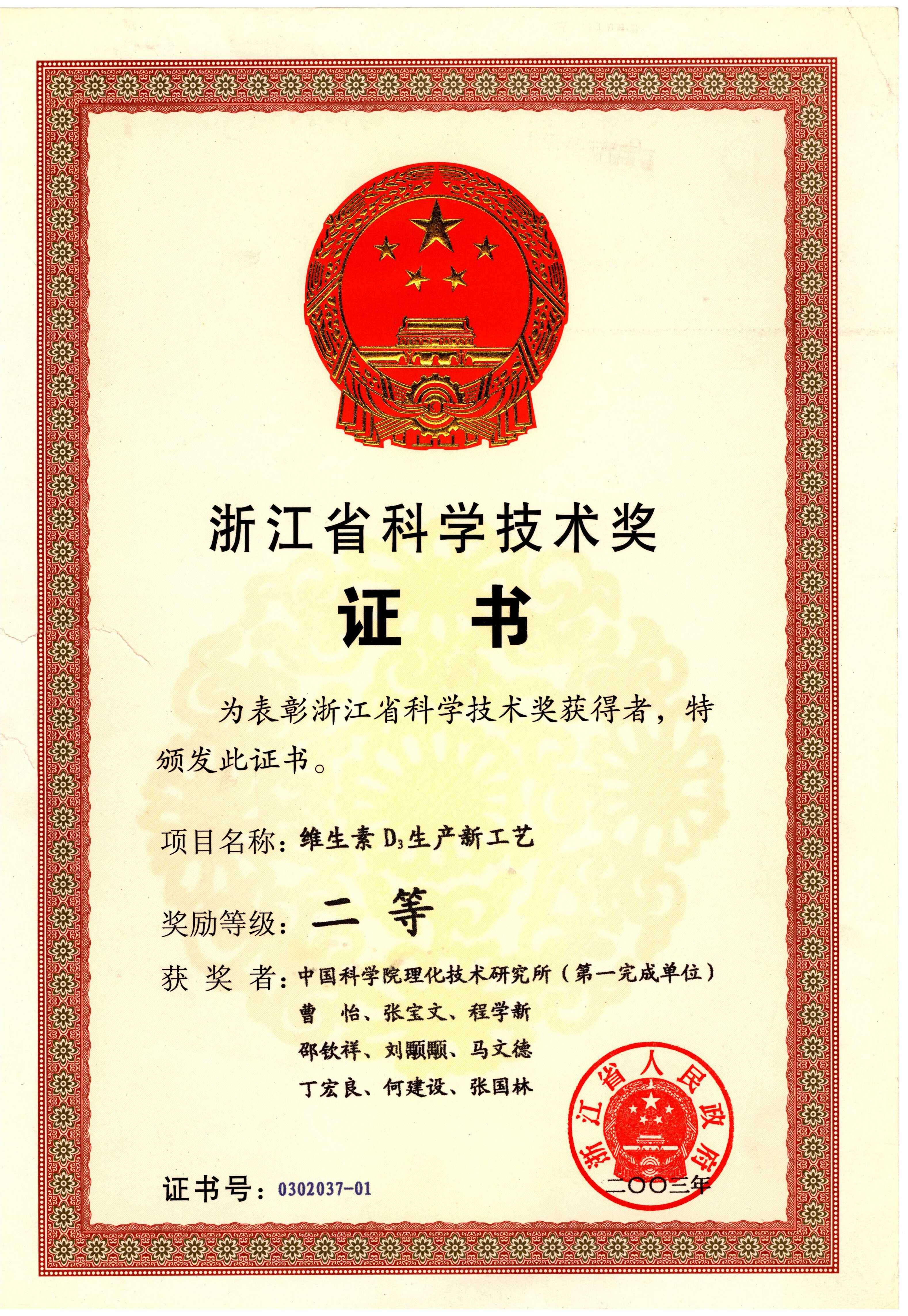 浙江省科学技术奖二等奖(2003)——维生素D3生产新工艺