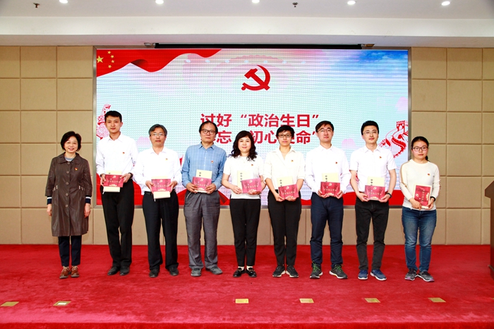 接着,会议组织了集体过政治生日活动。张丽萍书记为职能部门和低温工程与系统应用研究中心过政治生日的同志颁发了贺卡和纪念书籍。9位过政治生日的同志合唱了《不忘初心》,以歌声表达“不忘初心,继续前行”的信念。全体同志重温入党誓词,更加坚定了理想信念。