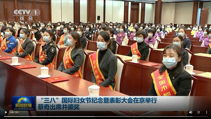3月1日,全国妇联在京举行“三八”国际妇女节纪念暨表彰大会。中共中央政治局常委、中央书记处书记蔡奇出席大会并为受表彰的先进典型代表颁奖。全国人大常委会副委员长、全国妇联主席沈跃跃出席会议并讲话。