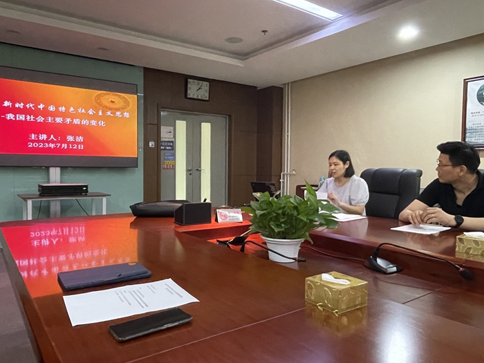 会上,张洁同志领学了《习近平新时代中国特色社会主义思想专题摘编》中关于我国不同社会发展阶段社会主要矛盾的转化的相关论述,从我国社会主要矛盾的历次变化、我国社会主要矛盾变化的主要依据、我国社会主要矛盾变化的实践要求三个方面进行了深入学习。