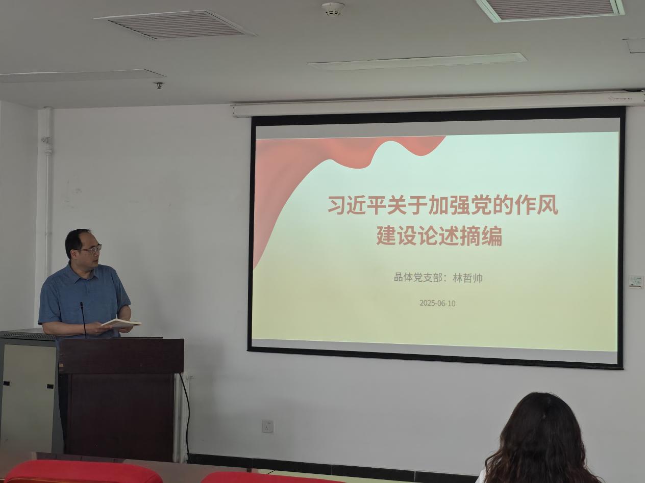 6月10日,晶体中心党支部召开支部党员大会。大会主要分为“支部书记讲党课”和“第二季度政治生日”两个部分。会议由支部组织委员公丕富主持。