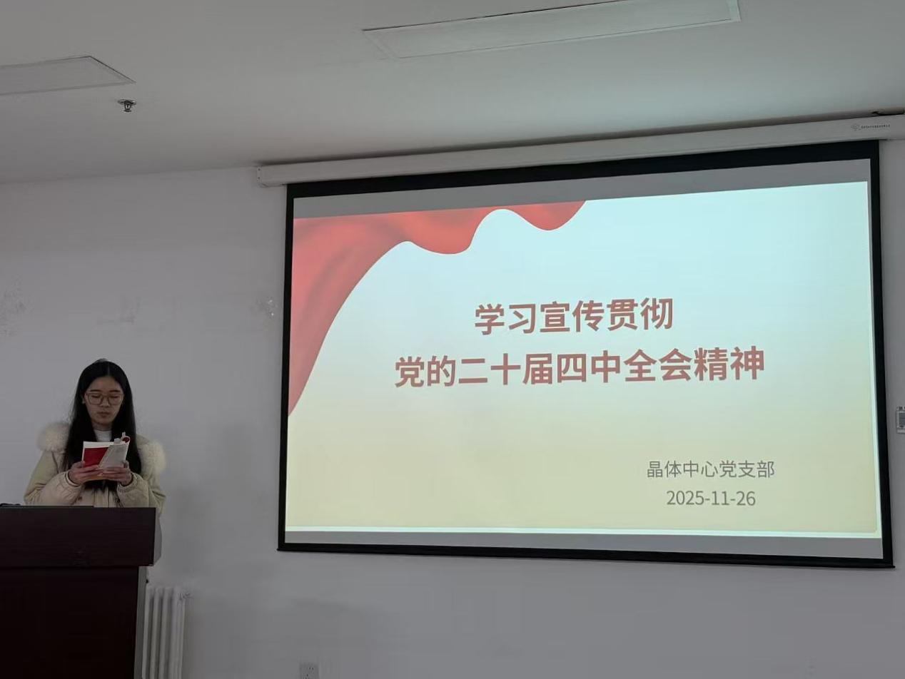 11月26日,晶体中心党支部召开党员大会,开展“保密和国家安全强化教育”专题学习,学习宣传贯彻党的二十届四中全会精神和《中国共产党思想政治工作条例》,并为第四季度入党的党员过政治生日。会议由支部宣传委员王桂丽主持。