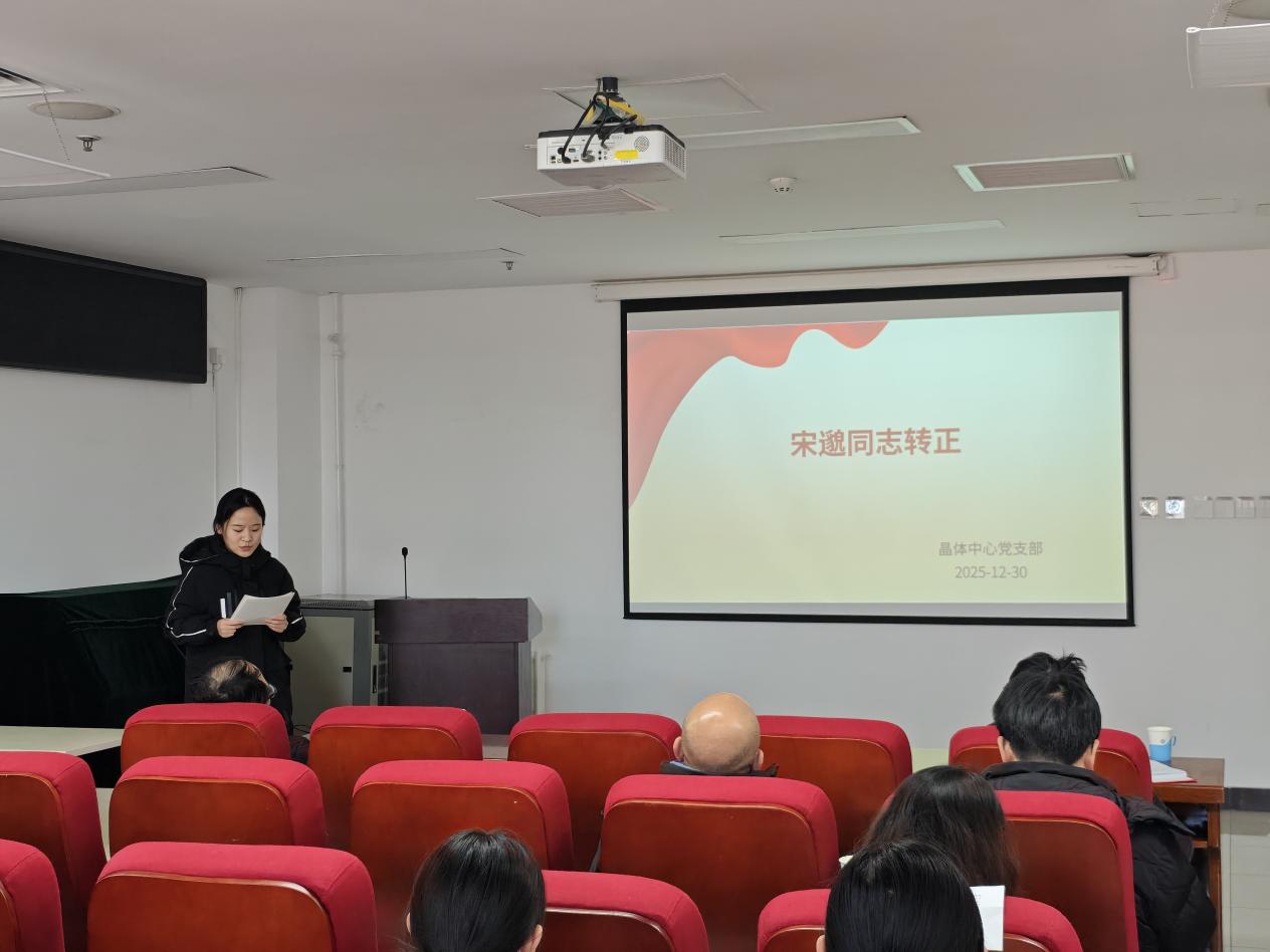 12月30日,晶体中心党支部召开党员大会,审议预备党员宋邈同志转正事宜。会议由组织委员公丕富主持。