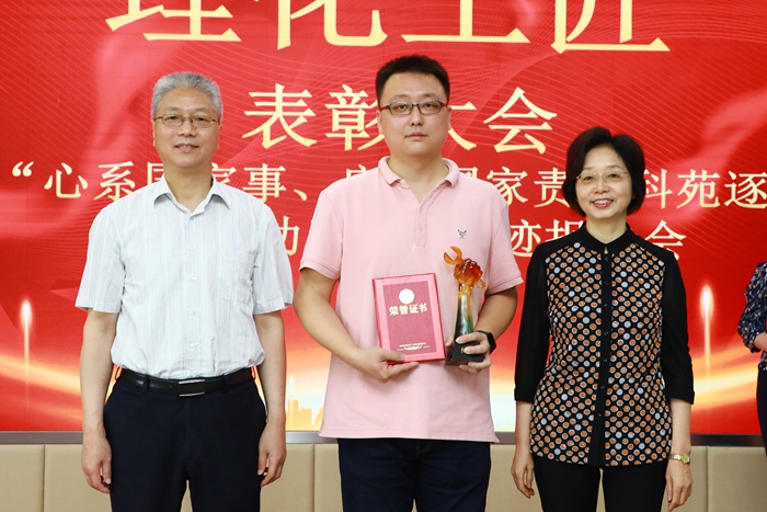 理化所所长汪鹏飞、党委书记张丽萍为获奖人员和团队颁发了获奖证书和奖杯。