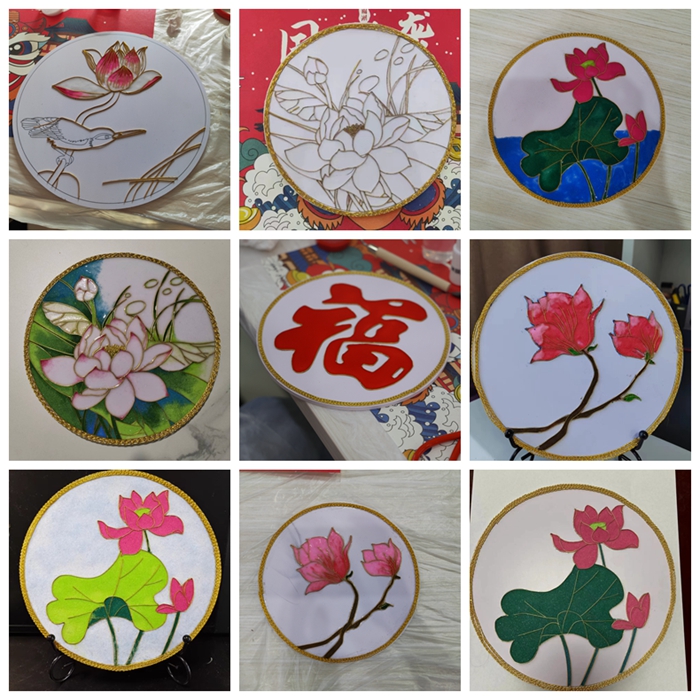 经过近3个小时的精雕细琢,一幅幅精美的掐丝金属线条画或流光溢彩的景泰蓝画便出现在各位女神手中,这些作品或雍容华贵、或淡雅清新、或生机勃勃、或沉静唯美,经过简单的手工就可以制作出如此精美的景泰蓝工艺品,让大家充满了自豪感和满足感。大家在掐丝珐琅画的技法中体味中华民族传统文化的韵味,共同分享景泰蓝工艺的制作体会和收获的喜悦,现场气氛热烈融洽。