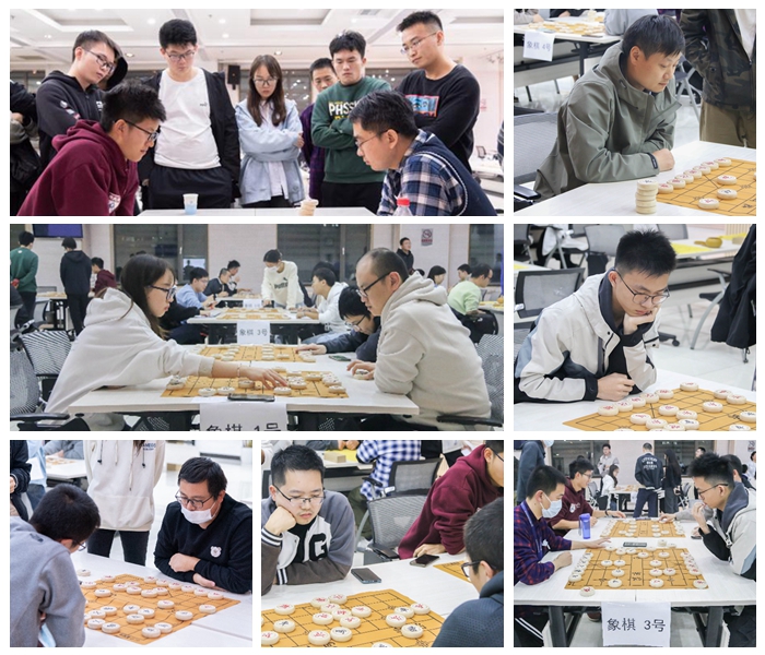 本次比赛的选手共50人,包括41名学生和9名职工,其中象棋组20人,五子棋组30人。青春洋溢的学生们构成了赛场的主色调,老师们稳重成熟的身影也为赛场添上了一道靓丽的色彩。赛场上,选手们全神贯注,屏气凝神,举棋、思棋、掷棋、收棋,无声之间,智慧的交锋在棋盘上激烈进行。