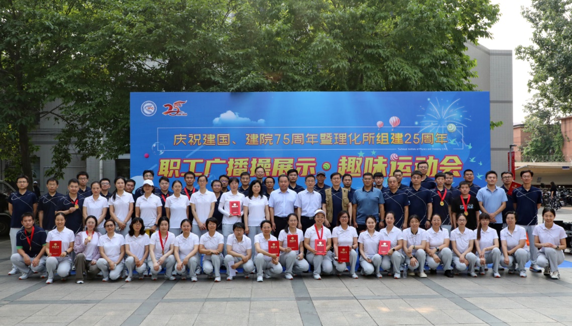 6月20日,理化所广场上热闹非凡、人声鼎沸,一场别开生面的广播操展示和趣味运动会活动如火如荼展开。此次活动不仅是对建国、建院七十五周年暨理化所组建二十五周年的热烈庆祝,更是理化所贯彻落实全民健身国家战略,展现职工昂扬奋进、拼搏进取精神的一次群众性体育盛会。理化所党委书记、工会主席王树涛发表了热情洋溢的致辞,所长王雪松宣布趣味运动会正式开始。副所长郭晓勇、纪委书记袁庆智、各研究中心主任、各领域科研骨干等370多名职工抱着极大的热情参加了各项活动。