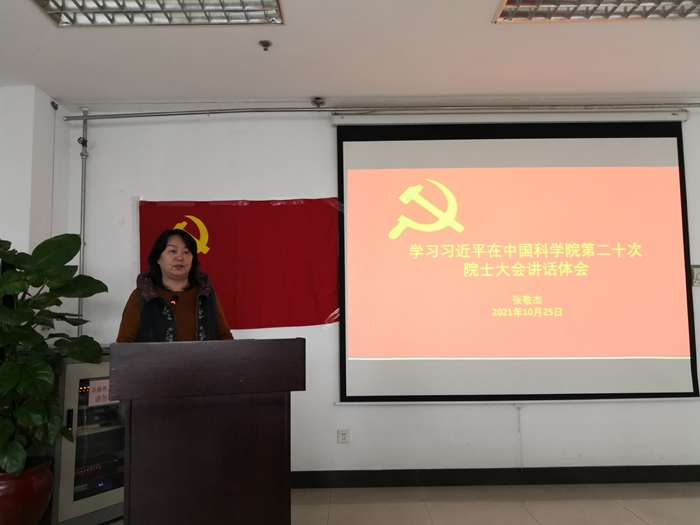 随后,由油气分工会主席张磊带领大家集体学习了习近平总书记在中央人才工作会议上的讲话并分享了自己的心得体会。她梳理了习总书记的讲话重点,认为目前国家层面的政策都在积极为科研人员创造宽松的科研环境,越来越重视人才工作,特别是青年人才,作为青年科研人员,我们要珍惜这个时代,努力有所作为。油气中心的预备党员王平和刘冉、发展对象贾倩倩、入党积极分子刘诗阳等分别就学习科技三会精神、习总书记在中央人才工作会议上的讲话、侯建国同志在2021年中科院夏季党组扩大会议精神传达会上的讲话等内容做了主题发言,汇报了自己的学习心得。
