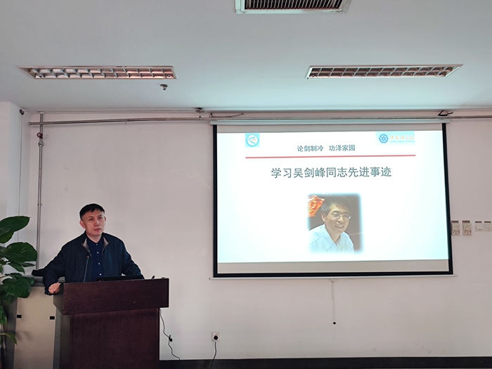 最后,支部书记公茂琼带领大家学习了吴剑峰同志的事迹,从“个人基本情况”、“专注科研 成绩硕果”、“教书育人 桃李天下”三方面进行介绍,分享了很多吴剑峰在工作、生活中的感人事迹,讲述了吴剑峰对自己科研工作的影响。罗二仓讲述了与吴剑峰一起工作的种种经历,他表示吴剑峰对自身科研工作给与了很大的帮助、理解与支持,与他共事的这段经历令人难忘。通过此次学习,吴剑峰同志踏实、勤奋、专注,精于创新,勇于攀登的精神使大家备受鼓舞,他孜孜不倦追求科学真理,患病期间仍以坚强的意志坚持研究和探索,他对科研的执着、对待事业的态度值得我们每个人学习。