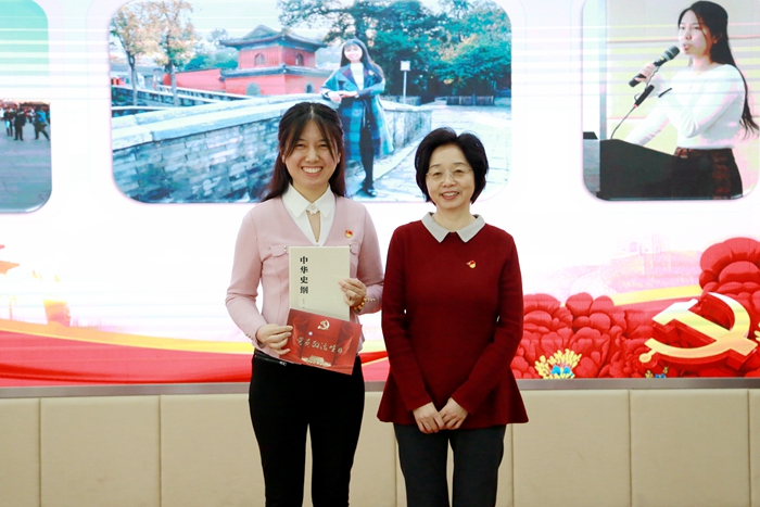 党委书记张丽萍为刘莹同志送上“政治生日”贺卡和礼物