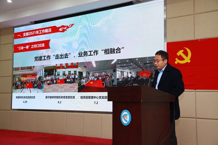 张阳代表支部委员会做了2021年度工作总结,介绍了支部查摆问题情况,从政治建设、精神引领和夯实基础三个方面详解了2022年党建工作要点,并制定了详细的工作计划。2021年,支部开展形式多样的“三会一课”、深入推进的“我为群众办实事”和富有特色的支部活动,使党建与业务工作深度融合,政治机关建设卓有成效。通过组织生活会凝练出的支委会问题清单和党员共性问题清单,为2022年党建工作的提升,提供了方向性指引。