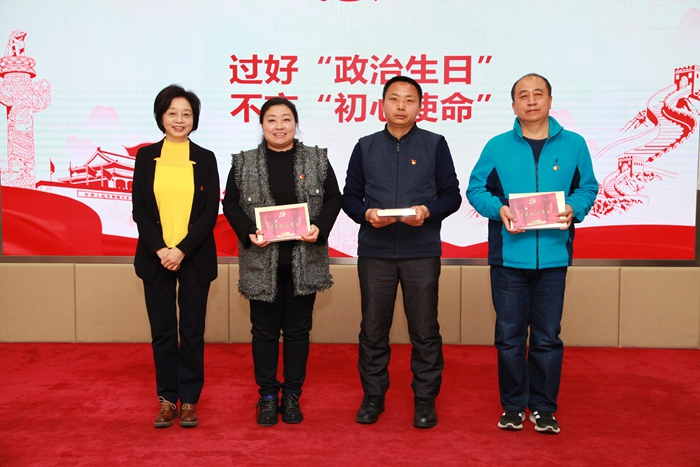 党委书记张丽萍为同志们送上“政治生日”贺卡和礼物