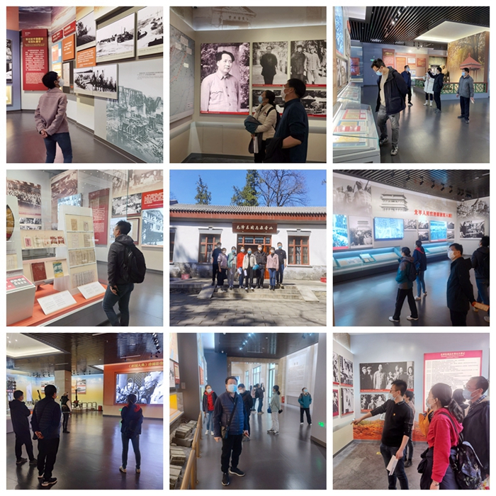 在香山革命纪念馆,全体人员参观了《为新中国奠基——中共中央在香山》主题展览,展览包括《进京“赶考”》、《进驻香山》、《继续指挥解放全中国》、《新中国筹建》、《不忘初心、牢记使命、永远奋斗》五个部分。在展柜展台前,大家驻足细看,不时相互交流,体悟先辈的革命精神和人民情怀。800多张图片,1200余件实物、文献和档案,202封电报手稿,一段段珍贵的记录影像,一件件见证重大事件的历史实物,让大家再次回顾中国共产党的光辉历史,重温“不忘初心、牢记使命”的铮铮誓言。