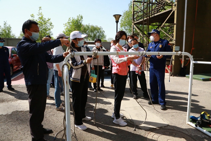 为增强职工逃生技能,教会职工利用逃生绳索等物资自救,4月22日下午,机关分工会和条件保障联合分工会共同组织全体会员前往海淀区消防救援支队八家消防救援站进行消防培训演习,张丽萍书记、王雪松副所长参加活动。