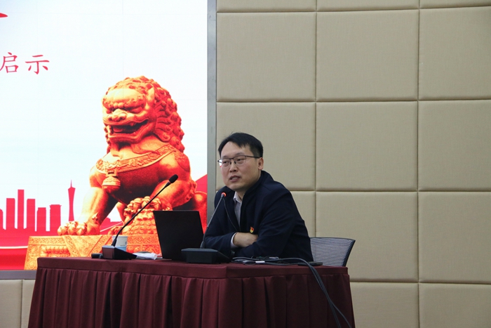 培训班第一讲课程,由中央团校教务部副主任陈鹏飞老师作主题报告《听党话·跟党走—党领导下共青团百年历程的经验和启示》。围绕中国青年运动的发端及时代背景、党领导下中国青年运动百年历程、百年青运史的经验和启示等方面,讲述了中国从屈辱到自强的历程中以青年为主导的标志性历史事件及重要影响。通过百年团史的经验和启示,指出共青团是党的助手和后备军,共青团的发展史,就是共青团始终坚定理想信念,团结带领广大青年坚定不移跟党走的奋斗史。