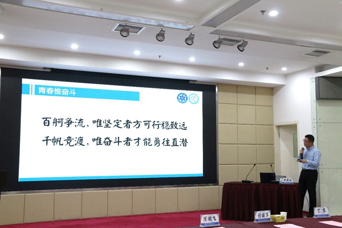 课程环节最后由“中国青年五四奖章”获得者严开祺带来《我是奋斗者——小微球的深潜之路》主题报告,报告讲述了以中空微球为核心技术的浮力材料对中国载人深潜的重大贡献及其团队二十年磨一剑,成就深海勇士的艰苦奋斗历程。从无到有,从有到强,严开祺老师作为世界领先的“奋斗者”号全海深载人潜水器结构系统的副主任设计师,以榜样的力量向全体青年发出了“请党放心,强国有我”的最强召唤。并在最后以五四奖章颁奖词勉励全体理化青年:“百舸争流,唯坚定者方可行稳致远;千帆竞渡,唯奋斗者才能勇往直潜”!