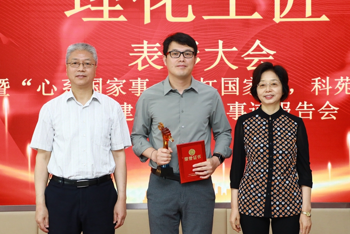 理化所所长汪鹏飞、党委书记张丽萍为获奖人员和团队颁发了获奖证书和奖杯。