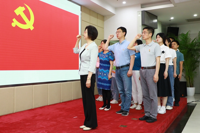 在新党员宣誓环节,张丽萍书记带领新党员宣誓,在场全体党员重温入党誓词。近年来,理化所发展党员工作特别是科技骨干入党工作取得新的成效,这更好地引领保障研究所高质量完成科技创新任务。