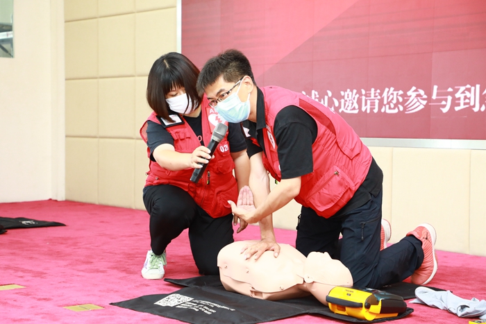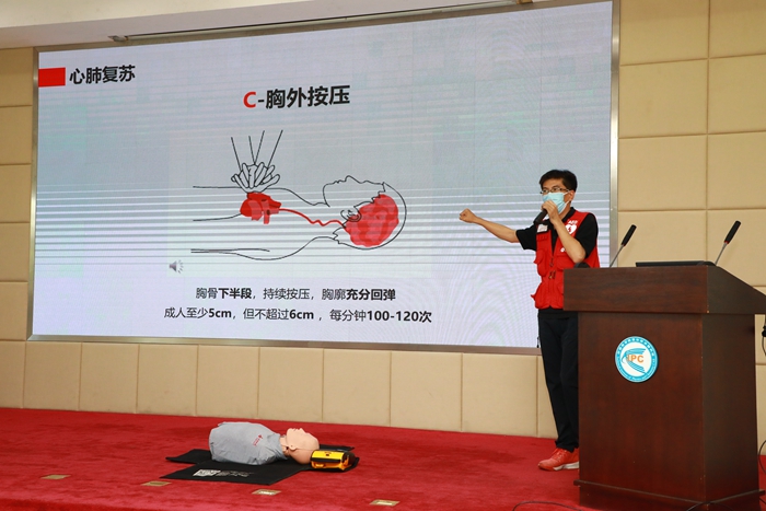 本次培训邀请美国AHA Heartsaver课程导师班成员、HS急救员、公众急救宣传员、第分得培训讲师李正午进行授课。李老师以“拯救生命,您也可以”为主题,为学员们详细教授了现代救护理念、心肺复苏基本理论和实践操作。在李老师与助教的指导下,参训学员进行了现场学习和演练。