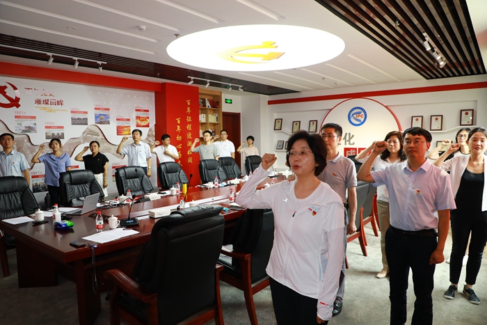 会议在理化所廊坊所区党建活动室召开。首先由张丽萍书记领誓,全体党员重温入党誓词。接着,张丽萍书记生动讲党课,领学了《宣言:什么是共产党,中国共产党是什么》,使同志们进一步了解了中国共产党的本质和初衷,明确了理想信念和奋斗方向。