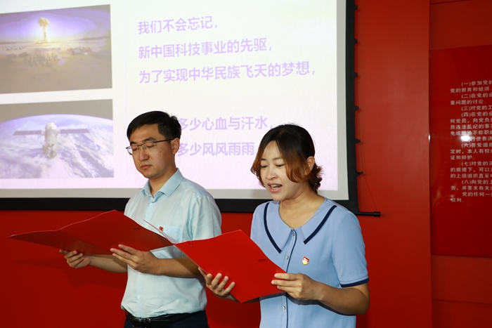 为弘扬科学家精神,韩旭和李东辉表演了诗歌朗诵《人民不会忘记——献给郭永怀院士》。通过声情并茂的朗诵,回顾了郭永怀院士舍身报国的感人事迹,使同志们接受了一次思想教育和精神洗礼。