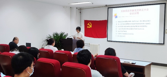 之后,预备党员刘冉宣读了她的《转正申请书》,汇报了相关情况等。党小组汇报了刘冉在预备期间的具体表现,表明意见同意该同志按时转正。中心主任张敬杰介绍了刘冉预备期间的表现,表明意见同意刘冉转正。袁静代表支委会宣读了对该同志的政治审查情况报告。与会党员对刘冉同志能否转正进行充分讨论。经支部大会无记名投票表决,一致同意刘冉按期转为中国共产党正式党员。