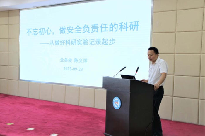接着,业务处陈义祥作了题为《不忘初心,做安全负责任的科研——从做好科研实验记录起步》的报告,增强同志们实验记录规范化的意识,进一步筑牢科研诚信思想防线。任昊慧、黄庐山、李雪薇等同志针对科研初心和实验记录规范化进行了讨论。