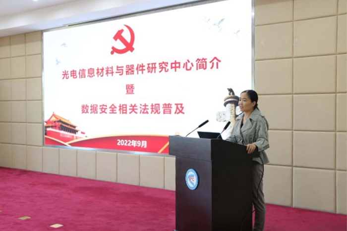 随后,支部书记刘卫敏向大家介绍了目前中心具体情况与党支部的机构设置,宣贯了实验室的安全责任分级管理制度。她从数据安全重要性入手,逐一对数据安全相关立法——《网络安全法》《密码法》《数据安全法》及《个人信息保护法》进行背景阐述与解读。