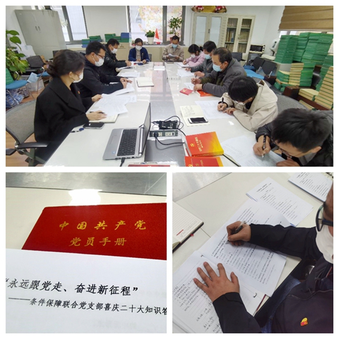 11月14日下午,条件保障联合党支部召开党员大会,开展学习宣传贯彻党的二十大会议精神专题党课。会议由支部书记朱文君主持,全体党员参加会议。