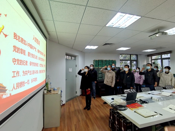 随后,支部为第四季度入党的党员同志颁发了“政治生日”贺卡和学习书籍。刘新建、董云鹏、朱文君3位过“政治生日”的同志分别分享了入党的初心和体会。全体党员随3位同志一起举起右手,重温了入党誓词。